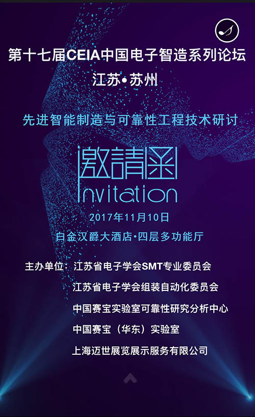 第十七届CEIA中国电子智造论坛.江苏-苏州站将与2017年11月10日在白金汉爵大酒店-四层多功能厅进行