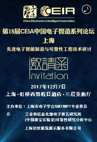 第十八届CEIA中国电子智造论坛.江苏-上海站将与2017年12月07日在上海-虹桥西郊假日酒店