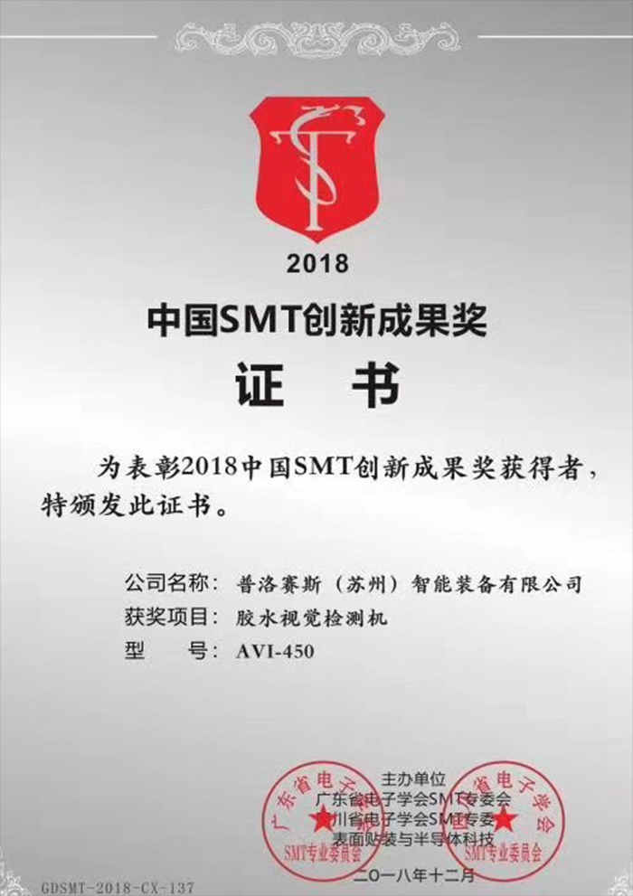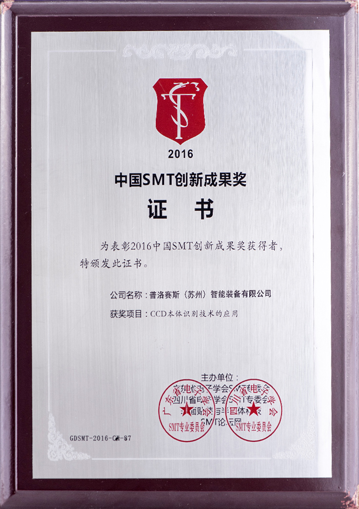 PROCISS荣获多项国家专利,并获得中国(SMT)技术创新成果奖、中国(SMT China)远见奖 、高新技术产品、高新技术企业等一系列技术成果奖以及其他众多荣誉! 我们将不断进取,达到国际技术同等水平,做到技术领先 ,服务优越,质量可靠的世界品牌!