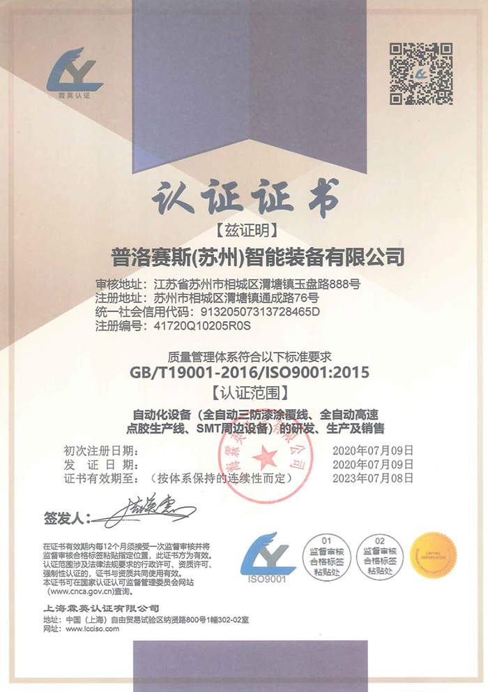 普洛赛斯(苏州)智能装备有限公司(PROCISS),是一家高新技术企业,公司拥有一支专业的自动化设备工艺工程研发团队,多年致力于全自动精密高速点胶、智能涂覆整线设备及AVI智能检测设备的自主研发。公司产品通过ISO9001:2015质量管理体系认证及欧盟CE认证。并建立了完善的售后服务体系,保证客户得到优质的服务。