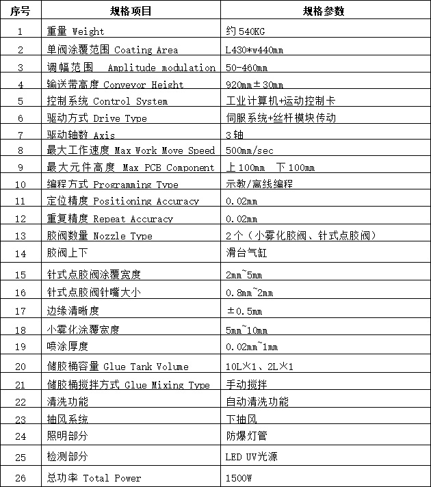 6.Z轴方向能根据异型器件高度自动上升及下降胶阀以调整单次涂覆高度;